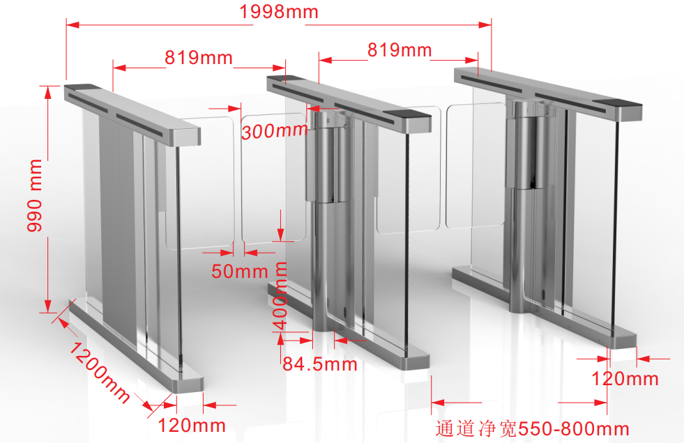 | 刷卡區(qū)域 | 刷卡區(qū)域:通(tōng)道(dào)兩側采用(yòng)雙方向內(nèi)置式讀(dú)卡器(qì)适配槽 |